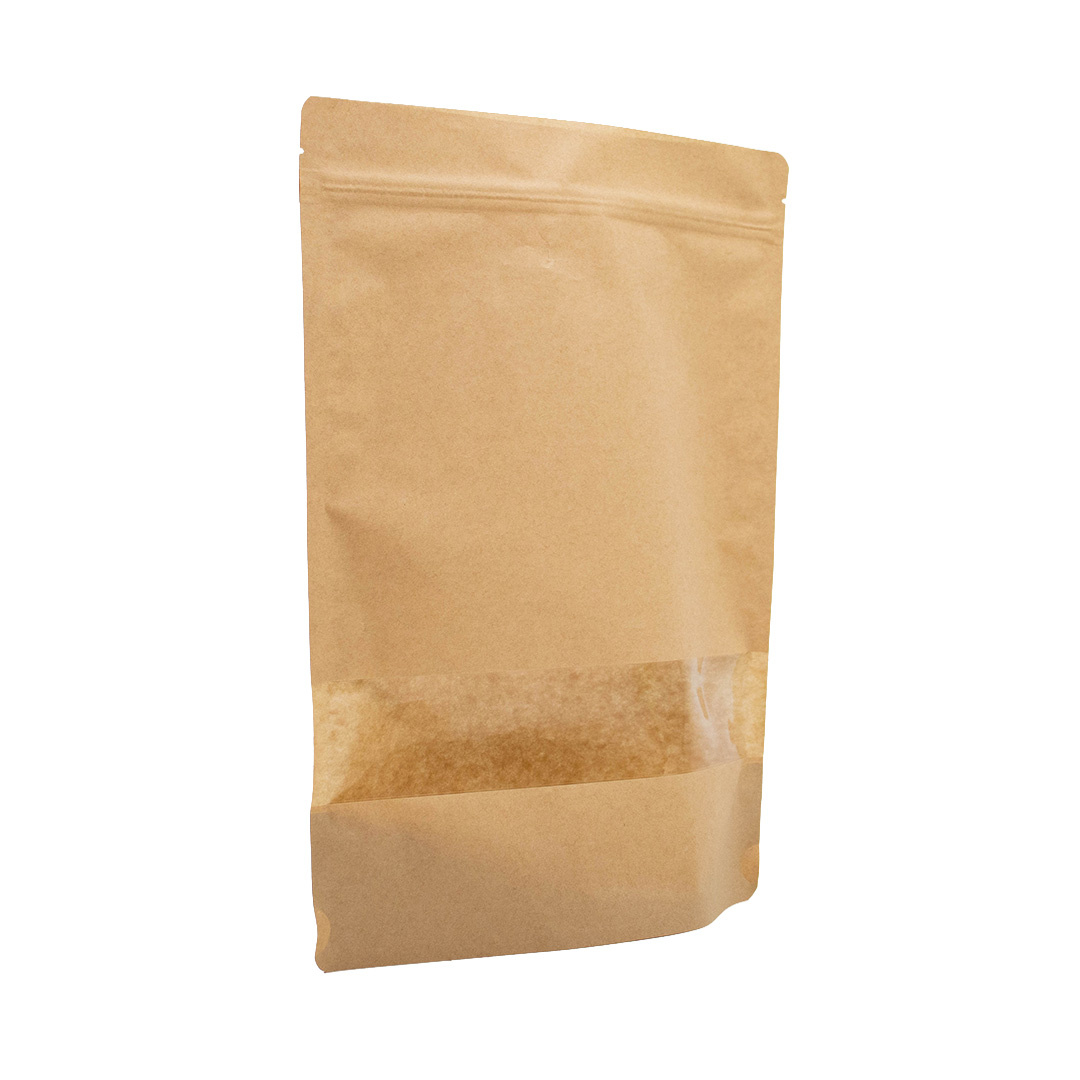 Diese braunen Standbodenbeutel mit Fenster im Format 30x37cm eignen sich ideal für die Verpackung und Präsentation größerer Produktmengen. Das transparente Sichtfenster macht den Inhalt sofort erkennbar, während die Kraftpapier-Optik für ein natürliches und hochwertiges Erscheinungsbild sorgt.