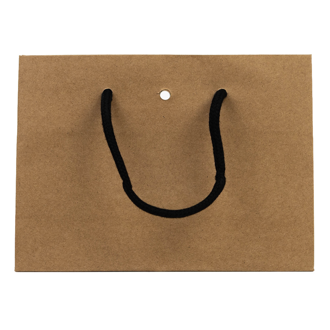 Diese luxuriösen Papiertragetaschen aus braunem Kraftpapier sind eine stilvolle und stabile Lösung für kleinere Einkäufe. Mit einem Format von 22 x 8 x 16 cm eignen sich die Taschen ideal für Accessoires, Geschenke und kleinere Produkte. Das 180 g Kraftpapier in Kombination mit den schwarzen Henkeln sorgt für ein hochwertiges und professionelles Erscheinungsbild.