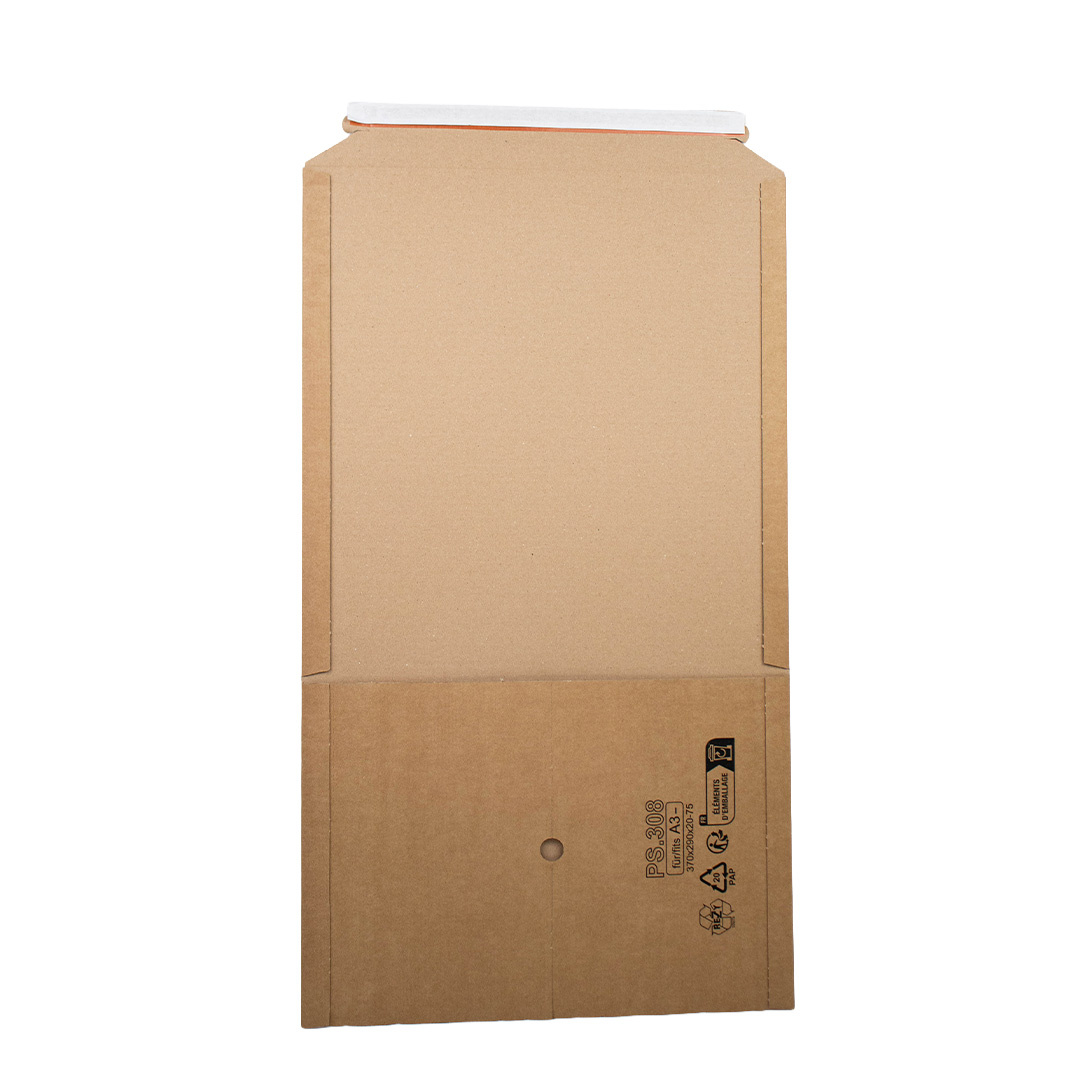 Diese Buchverpackungen im A3- Format (370x290mm) eignen sich ideal für den Versand von Büchern, Broschüren, Katalogen und anderen flachen Drucksachen. Dank der variablen Füllhöhe von 20 bis 75mm passt sich die Verpackung optimal an den Inhalt an und schützt zuverlässig beim Transport.