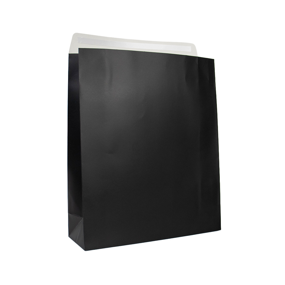 Möchten Sie kleine Produkte mit demselben Luxus verpacken? Dann werfen Sie einen Blick auf die Geschenktaschen schwarz 19x7x24cm und 12x5x16cm. Hergestellt aus demselben hochwertigen Papier und mit derselben mattschwarzen Schicht versehen. Diese Geschenktüten haben die kleine Verpackungseinheit von 25 Tüten. Sie suchen nach flachen schwarzen Taschen. Auch diese finden Sie in verschiedenen Größen in unserem Shop.