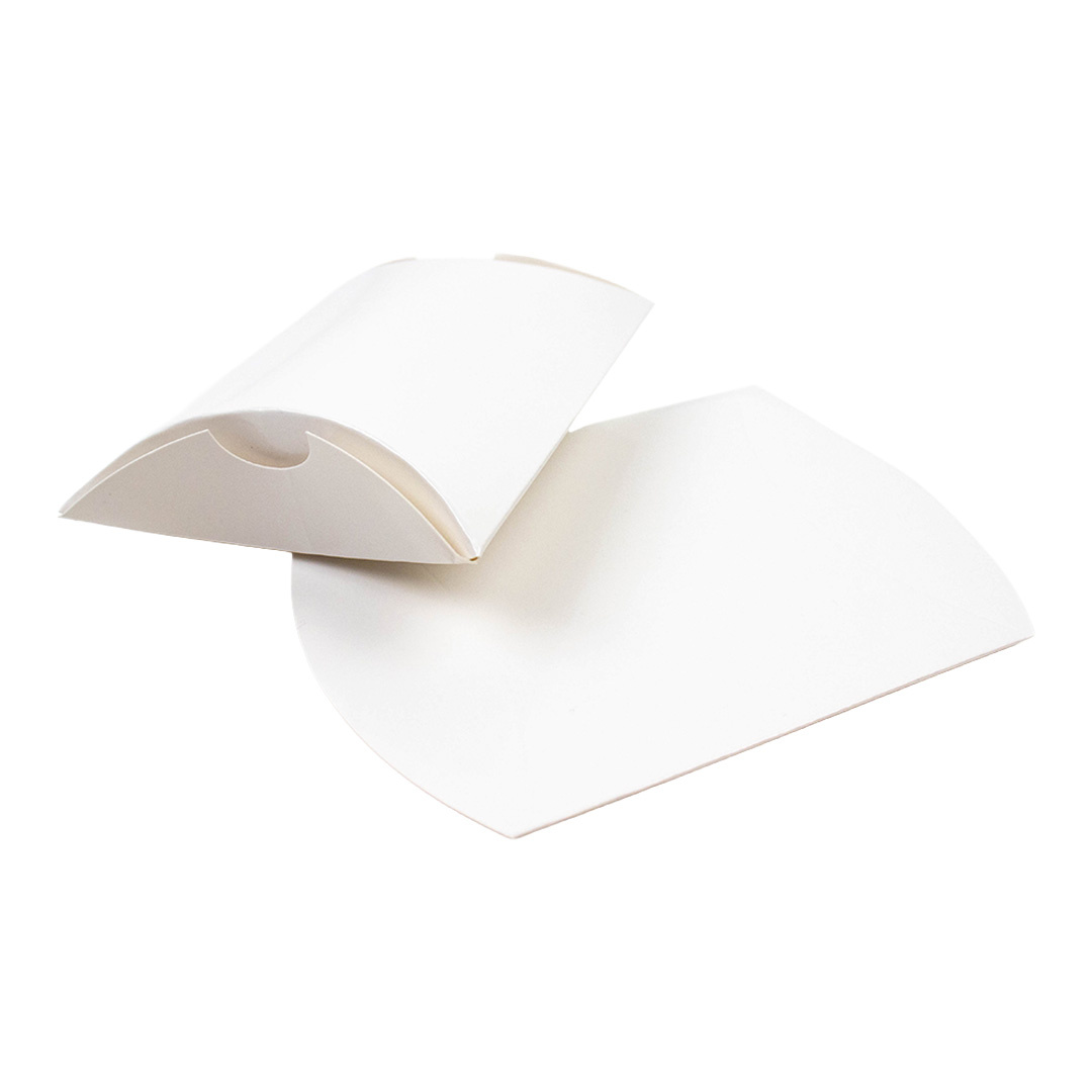 Diese Kissenverpackung in Weiß mit den Maßen 105 x 95 x 30 mm ist eine elegante Verpackungslösung für kleine und flache Produkte. Die geschwungenen Einstecklaschen sorgen für eine hochwertige Optik – ganz ohne zusätzliches Klebematerial.