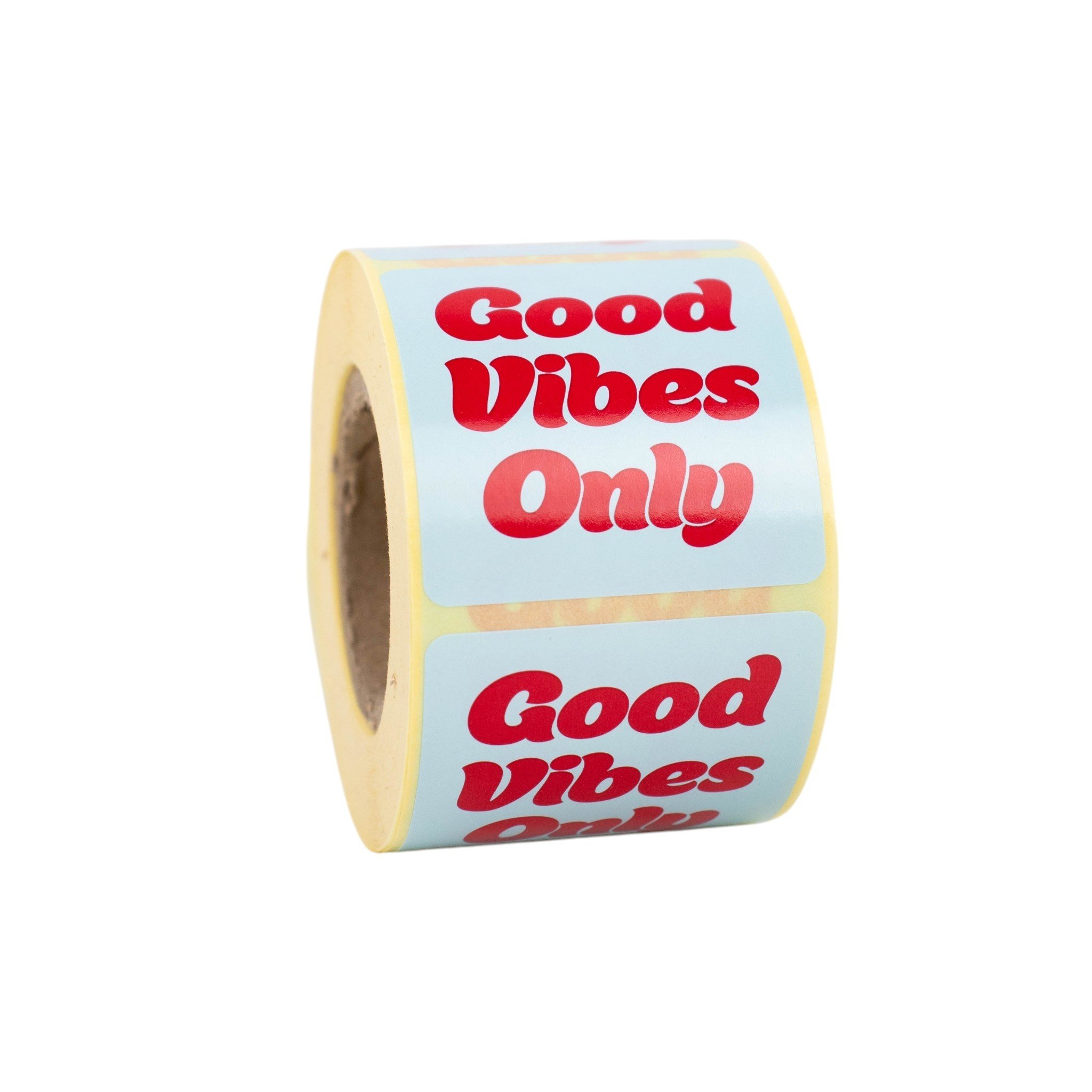 Diese quadratischen Sticker mit dem Text 'Good vibes only' sorgen für eine positive und auffällige Verpackung. Ideal für den Einsatz im E-Commerce und Einzelhandel.