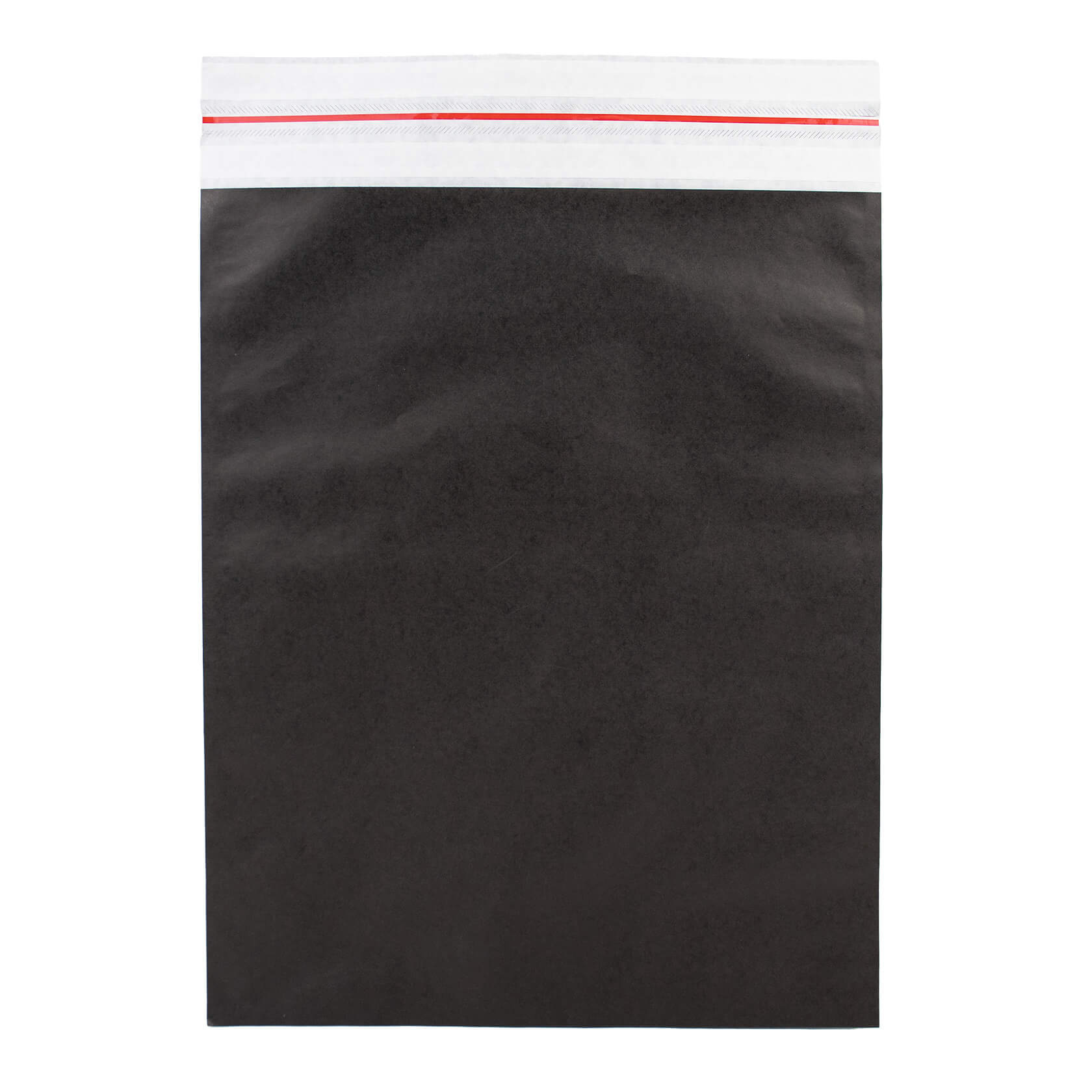 Diese robusten schwarzen Papier-Versandtaschen im Format 40 × 50 cm mit 7 cm Seitenfalte bieten viel Platz für voluminöse Produkte. Sie sind aus 80 g/m² starkem Kraftpapier gefertigt und eignen sich perfekt für Modeversand, Merchandise oder große Kataloge – nachhaltig und stilvoll.