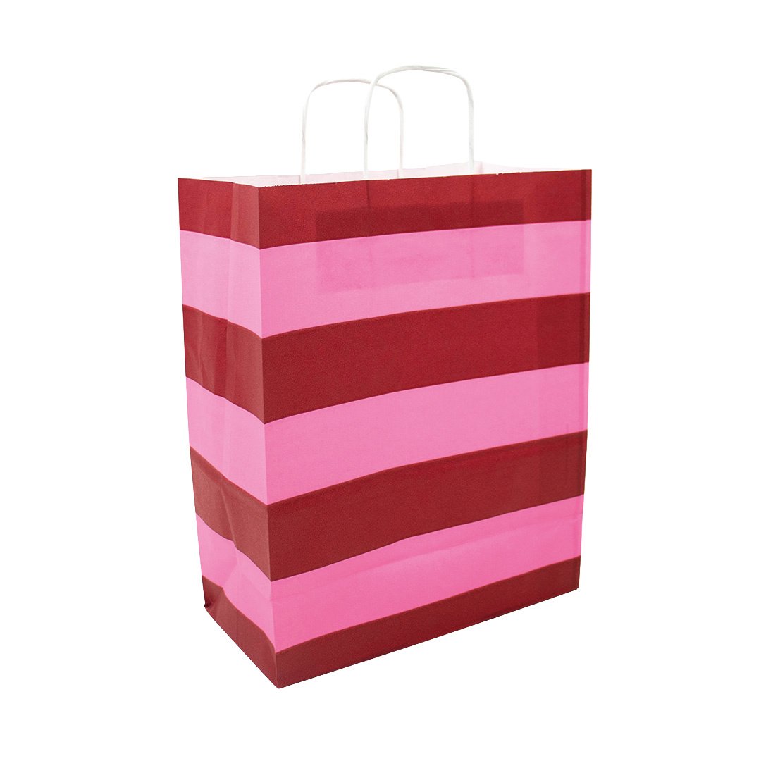 Die Papiertaschen Stripes Pink A4 verbinden ein verspieltes Streifenmuster mit einer professionellen Optik. Die frischen rosa Streifen sorgen für eine auffällige und hochwertige Präsentation Ihrer Produkte. Ideal für Einzelhandel, Messen oder Onlineshops, die ihrer Verpackung das gewisse Etwas verleihen möchten.