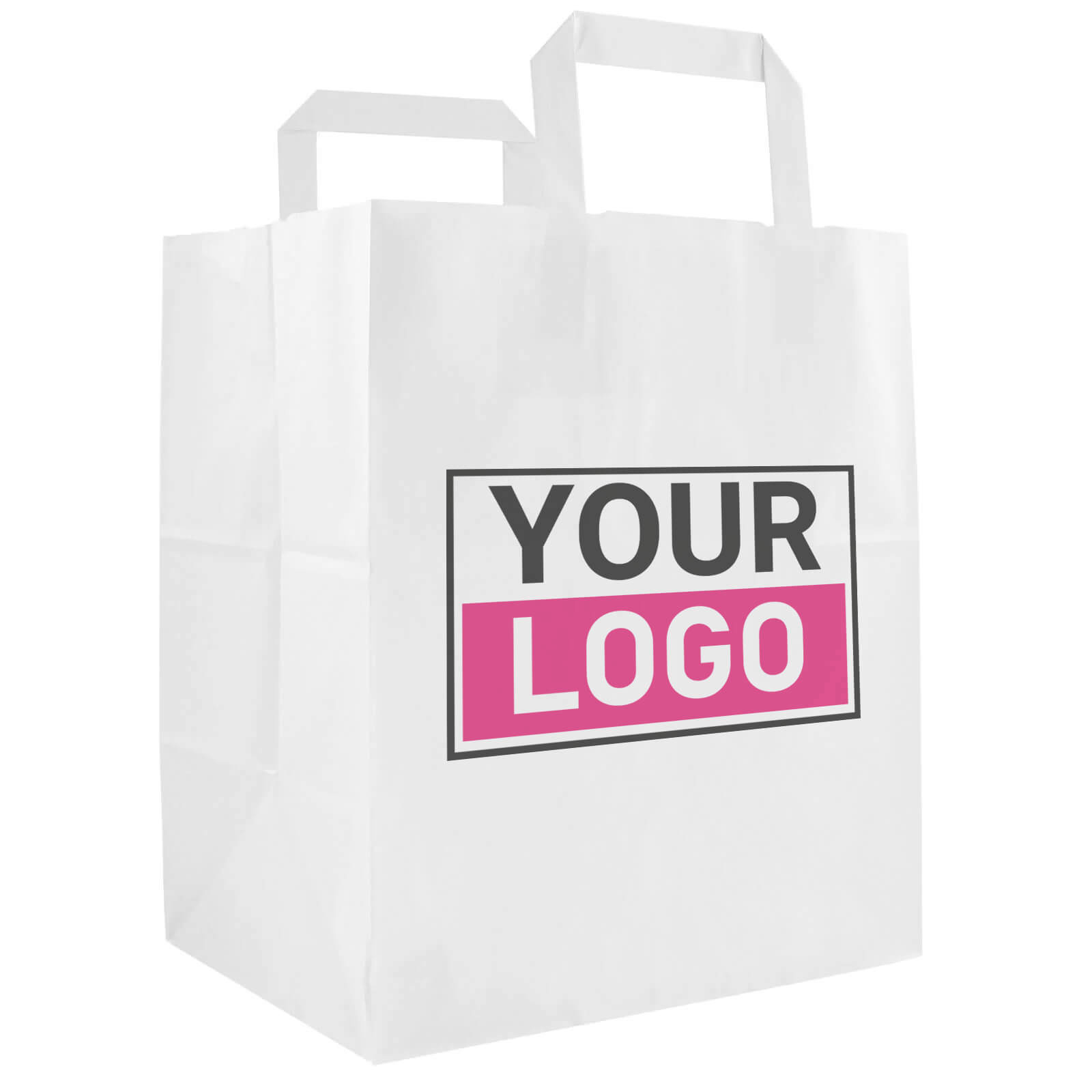 Die Taschen bestehen aus starkem weißem Kraftpapier und können einseitig im Vollfarbdruck bedruckt werden. So verleihst du deiner Verpackung ein professionelles und persönliches Erscheinungsbild. Ob Logo, Markenname oder Design – alles kann individuell umgesetzt werden. Für das beste Ergebnis bitten wir dich, dein Motiv als Vektordatei zu senden, damit der Druck gestochen scharf wird.