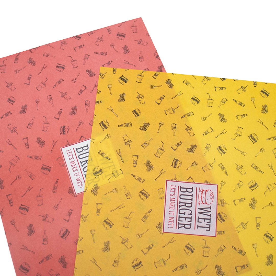 Bedrucktes fettabweisendes Papier wird häufig zum Verpacken von Burgern, Sandwiches und Snacks verwendet und sorgt für eine professionelle Präsentation Ihrer Produkte.