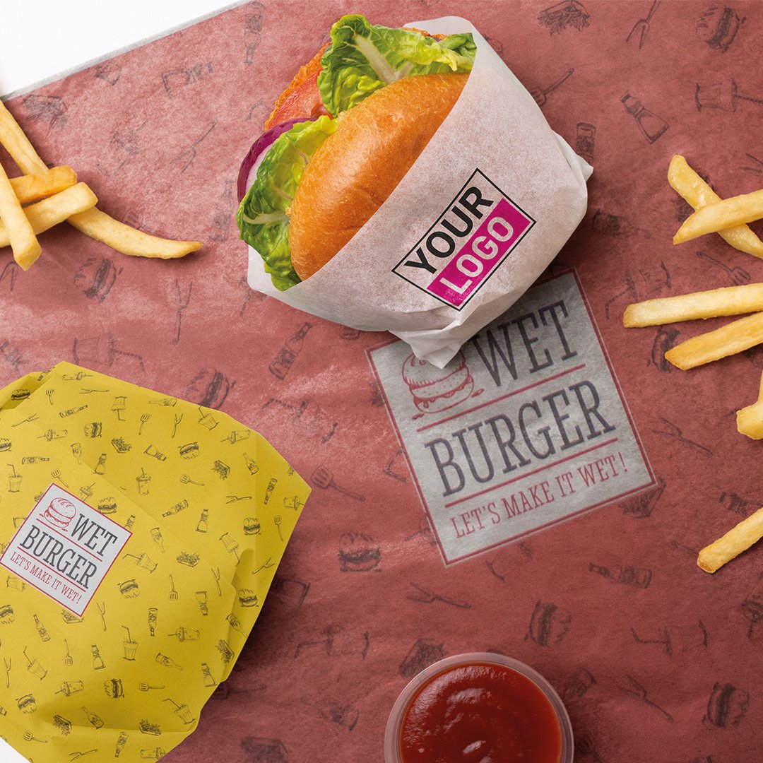 Dieses fettabweisende Papier im Format 15 x 26 cm eignet sich ideal zum Verpacken von Lebensmitteln wie Burgern, Sandwiches, Snacks oder anderen Take-away-Produkten. Mit Ihrem Logo bedruckt wird jede Verpackung gleichzeitig zu einer Werbefläche für Ihre Marke.