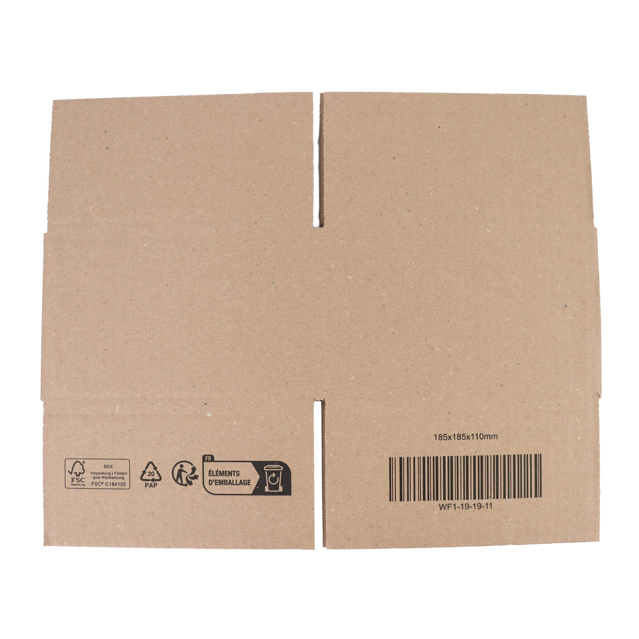 Die Anzahl der Wellen pro Meter Karton liegt bei etwa 160. Nun, da wir wissen, um welche Kartonsorte es sich handelt, können wir das Format besprechen. Im gefalteten Zustand hat dieser Karton eine Größe von 19x19x11 cm. Dieses Format eignet sich ideal für den Versand kleinerer Produkte, wie z. B. ein Buch, einen Schal oder ein Accessoire-Set. Für zerbrechliche Artikel empfehlen wir zusätzliches Füllmaterial zu verwenden, damit der Inhalt gut geschützt bleibt.