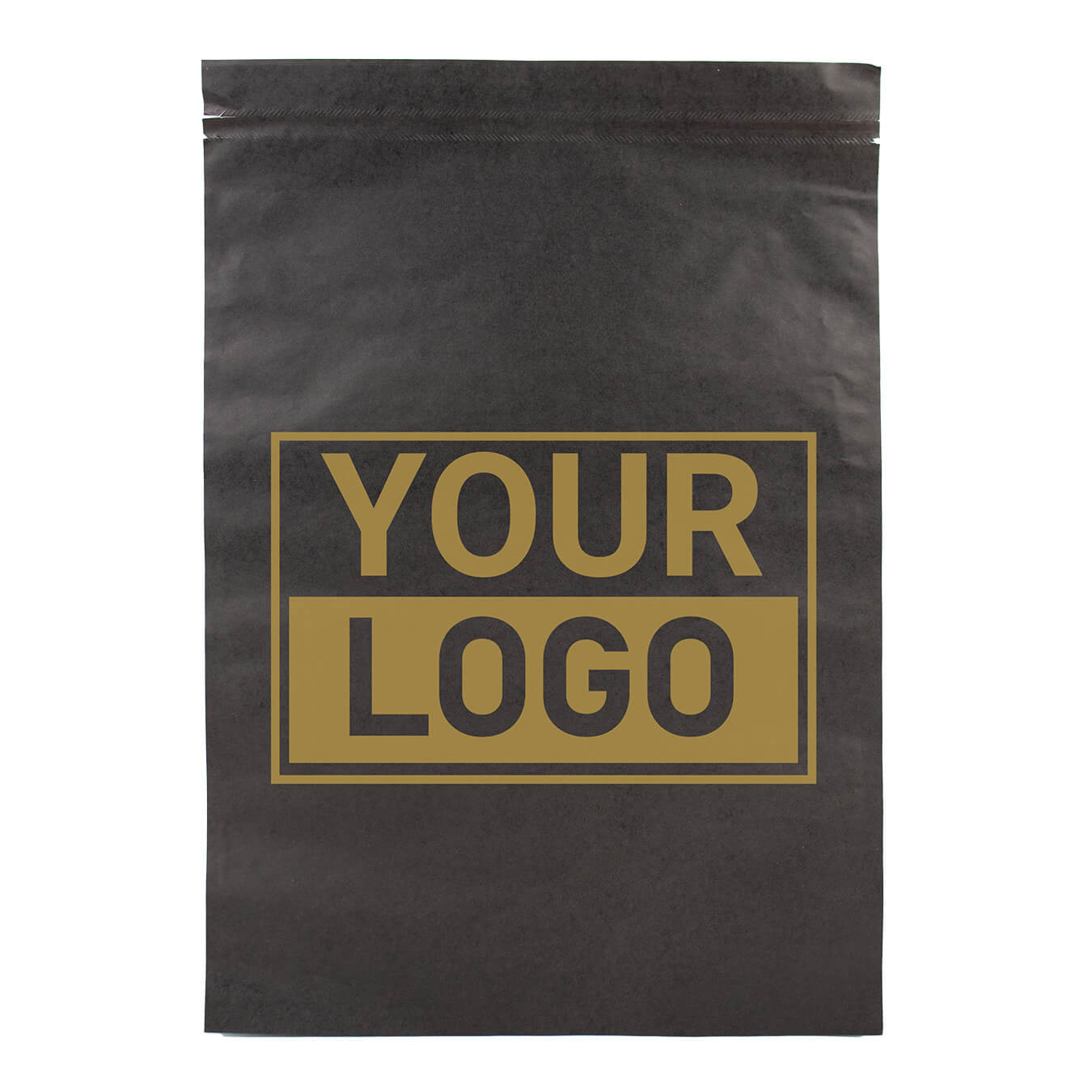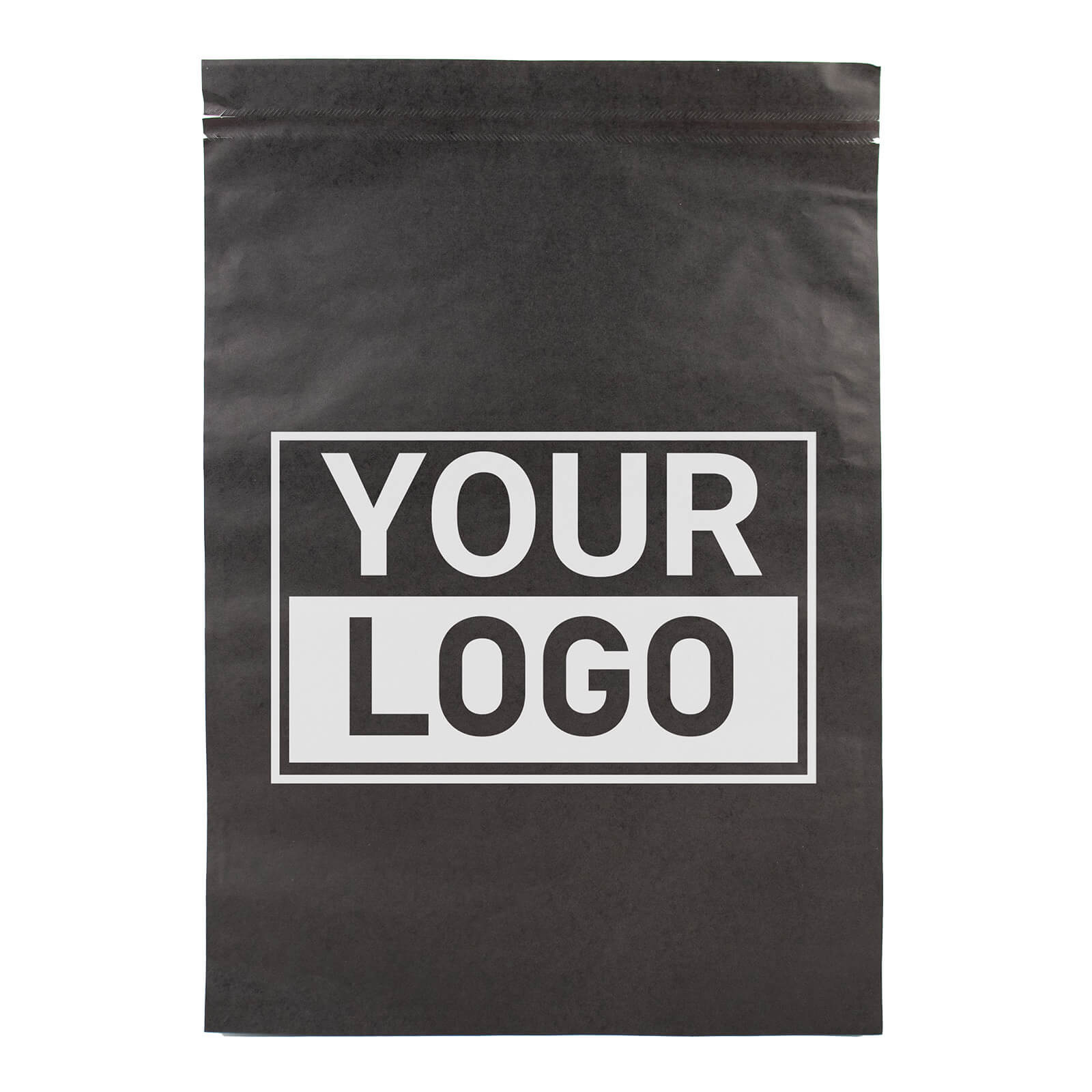 Mit diesen schwarzen Papier versandtaschen im Format L versenden Sie größere Produkte stilvoll und nachhaltig. Durch den Aufdruck Ihres Logos oder Designs machen Sie jede Sendung zu einem professionellen Markenauftritt.