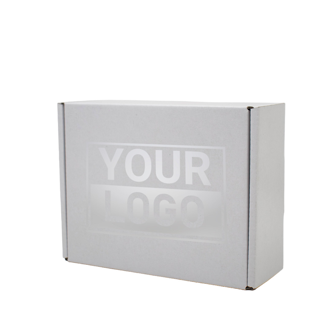 Dieser weiße Postkarton mit den Maßen 160 x 130 x 60 mm eignet sich ideal für den Versand kleiner Produkte. Mit einem hochwertigen Siebdruck in Schwarz, Gold oder Silber präsentieren Sie Ihre Marke professionell.