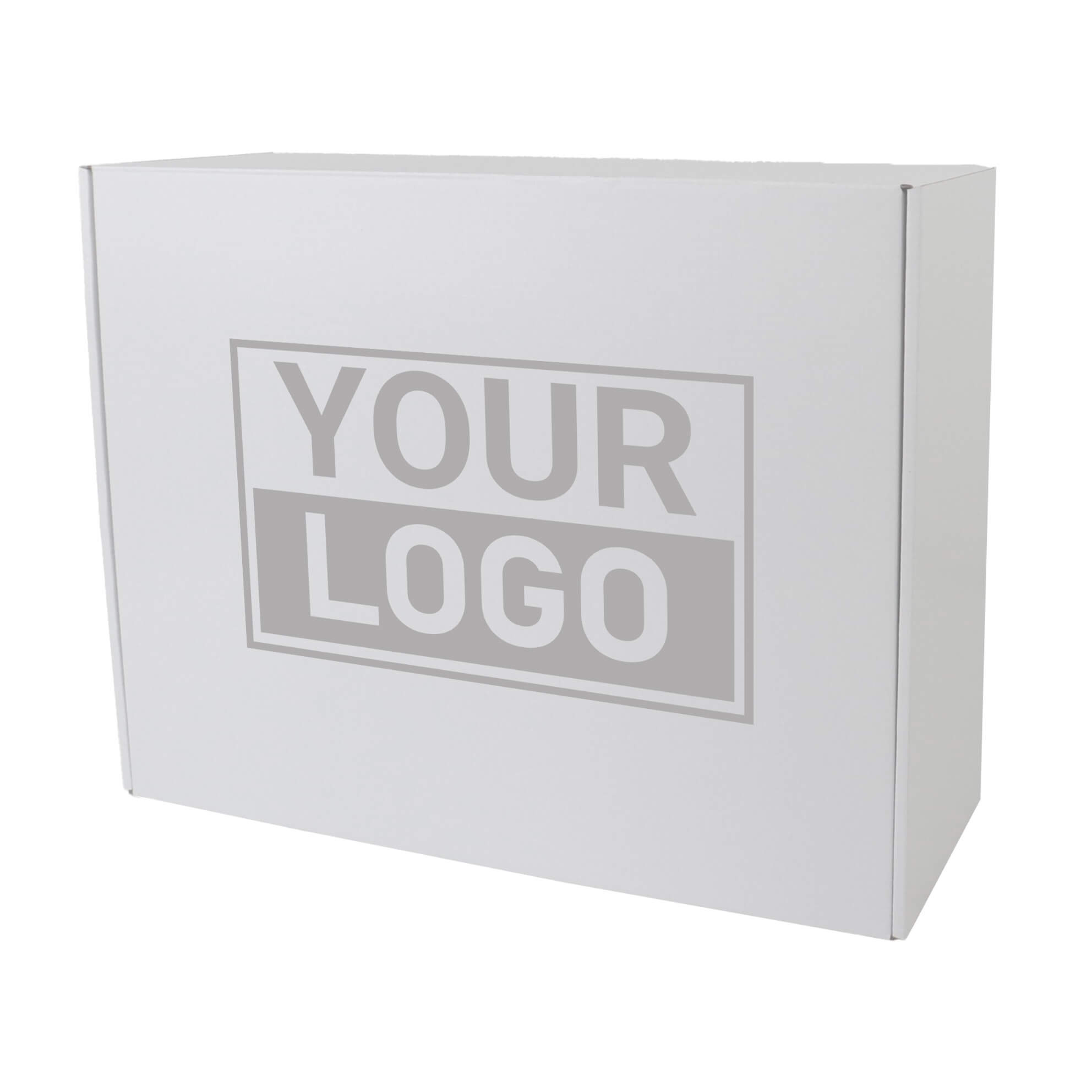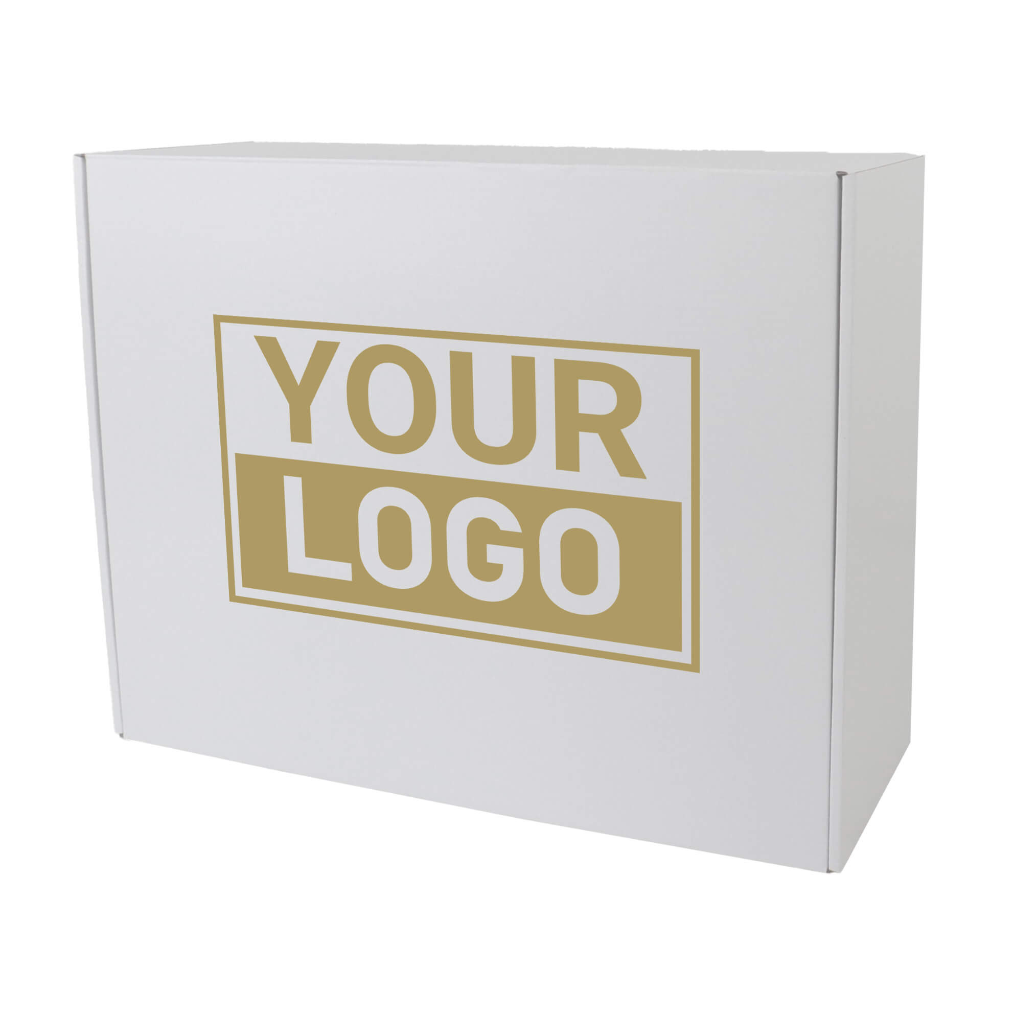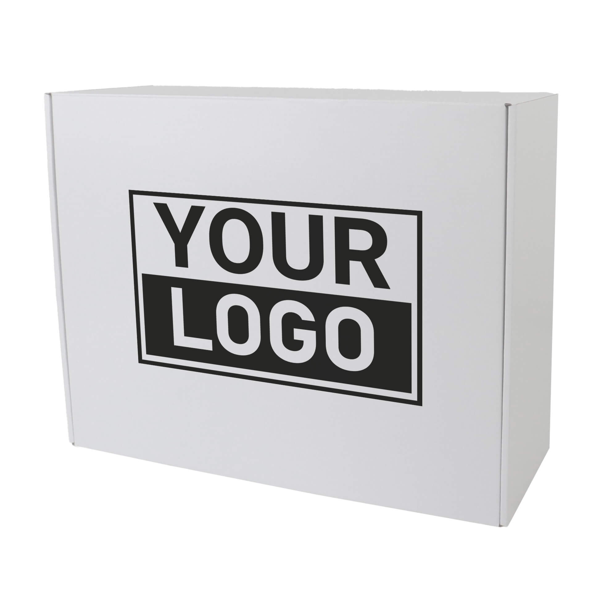 Möchten Sie Ihre Pakete mit einem professionellen Auftritt versenden? Diese weißen Postkartons im Format 380x300x140 mm können per Siebdruck mit Ihrem Logo oder Design bedruckt werden. Der Druck erfolgt auf dem Deckel der Schachtel und ist in Schwarz, Gold oder Silber möglich. Ideal für Onlineshops und Unternehmen, die ihre Marke direkt beim Kunden sichtbar machen wollen.