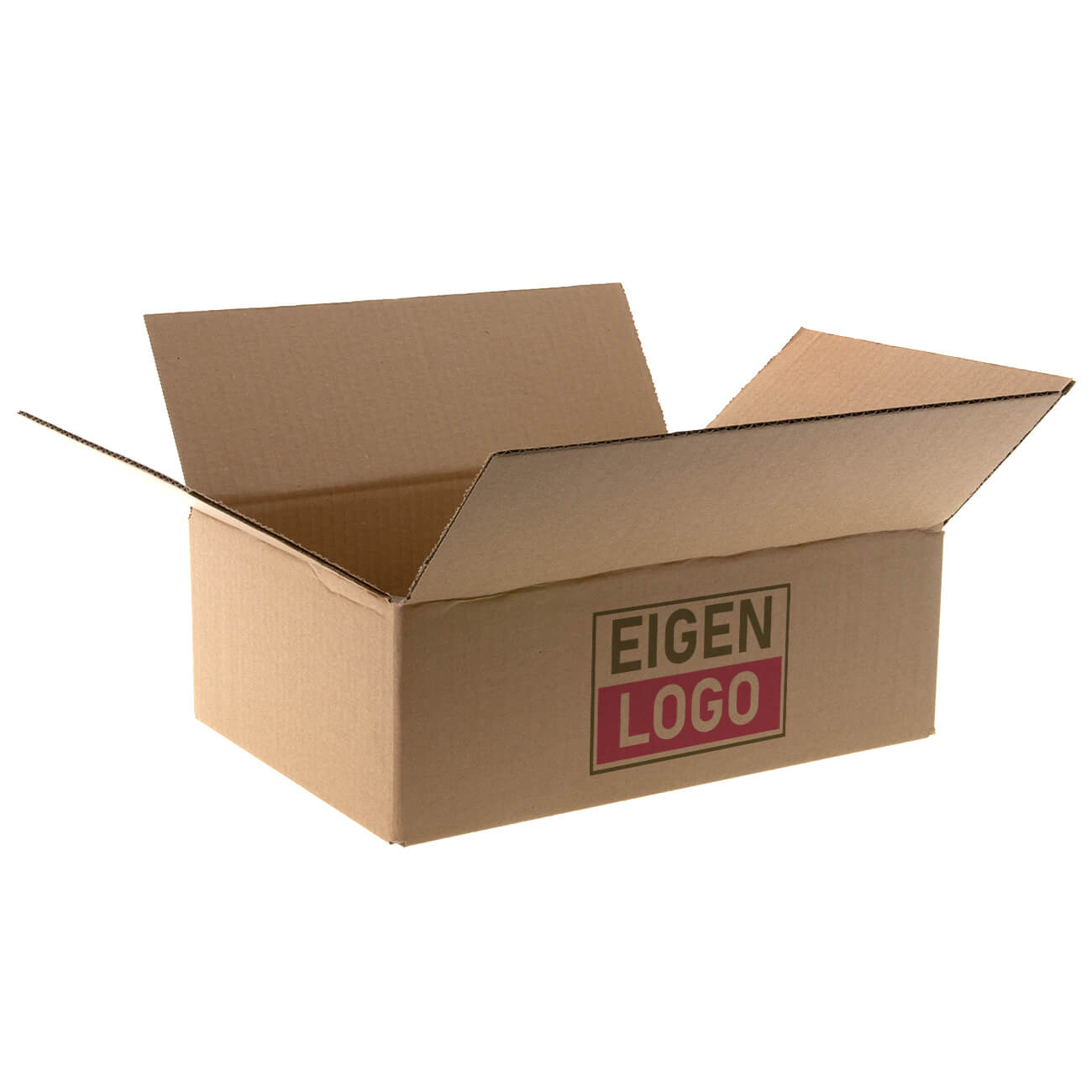 Die braunen Kartons können in Vollfarbe bedruckt werden. Das gleiche Design wird auf beiden langen Seiten des Kartons angebracht. Der Druck erfolgt digital und sorgt für ein sauberes und scharfes Ergebnis. Vollflächige oder Fotodrucke sind nicht möglich, Logos und einfache Motive kommen jedoch sehr gut zur Geltung.