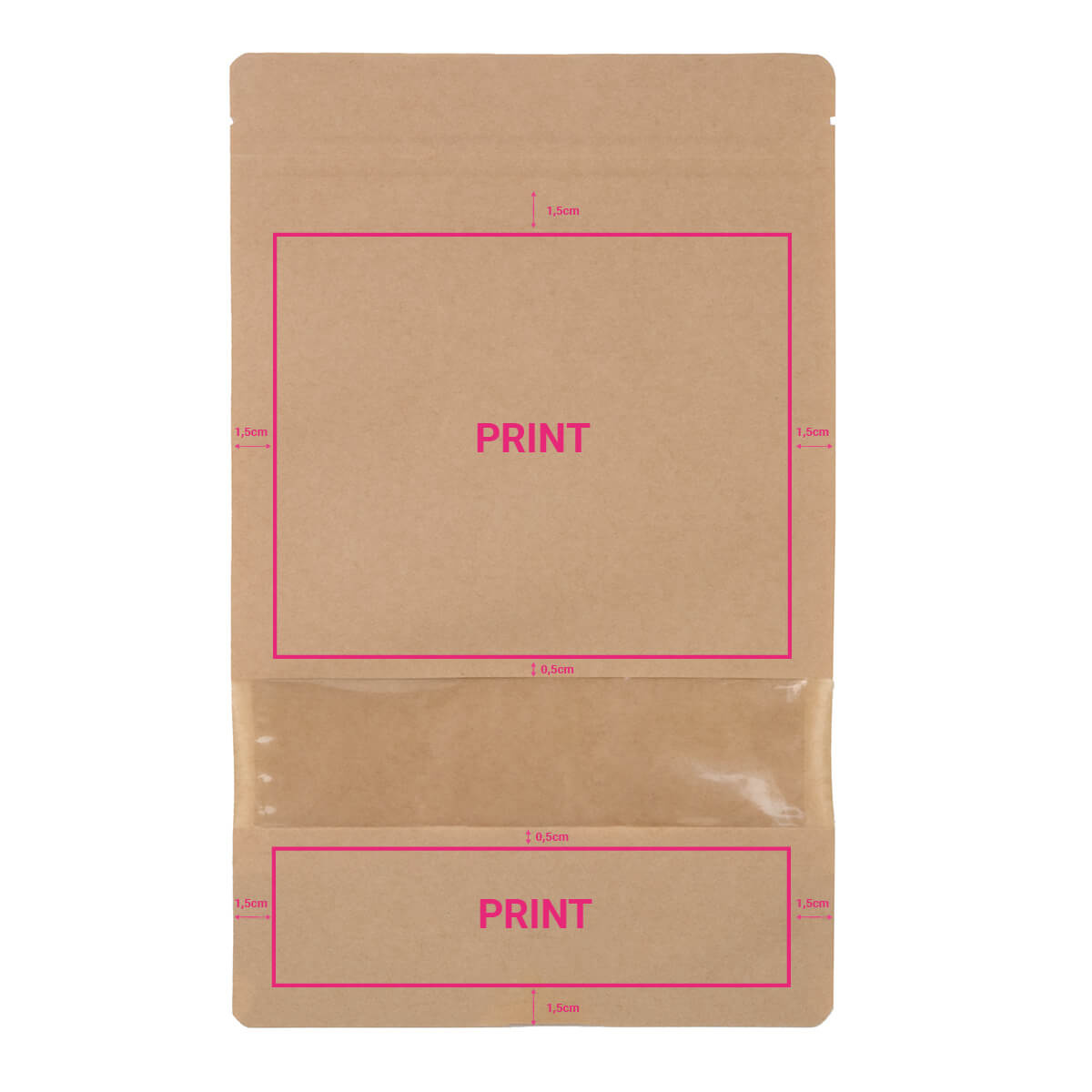 Bestellen Sie jetzt Ihre bedruckten Standbodenbeutel Braun mit Fenster 30x37cm (5000 ml) auf www.rotimshop.de