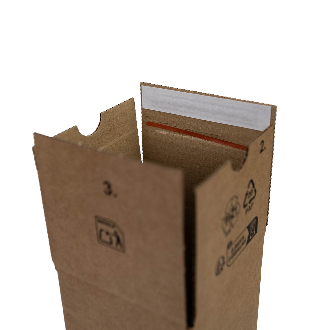 An beiden kurzen Seiten befindet sich ein starker Klebestreifen, mit dem sich die Versandhülse schnell und ohne zusätzliches Klebeband verschließen lässt. Das spart Zeit beim Verpacken und sorgt für ein sauberes und ordentliches Ergebnis.