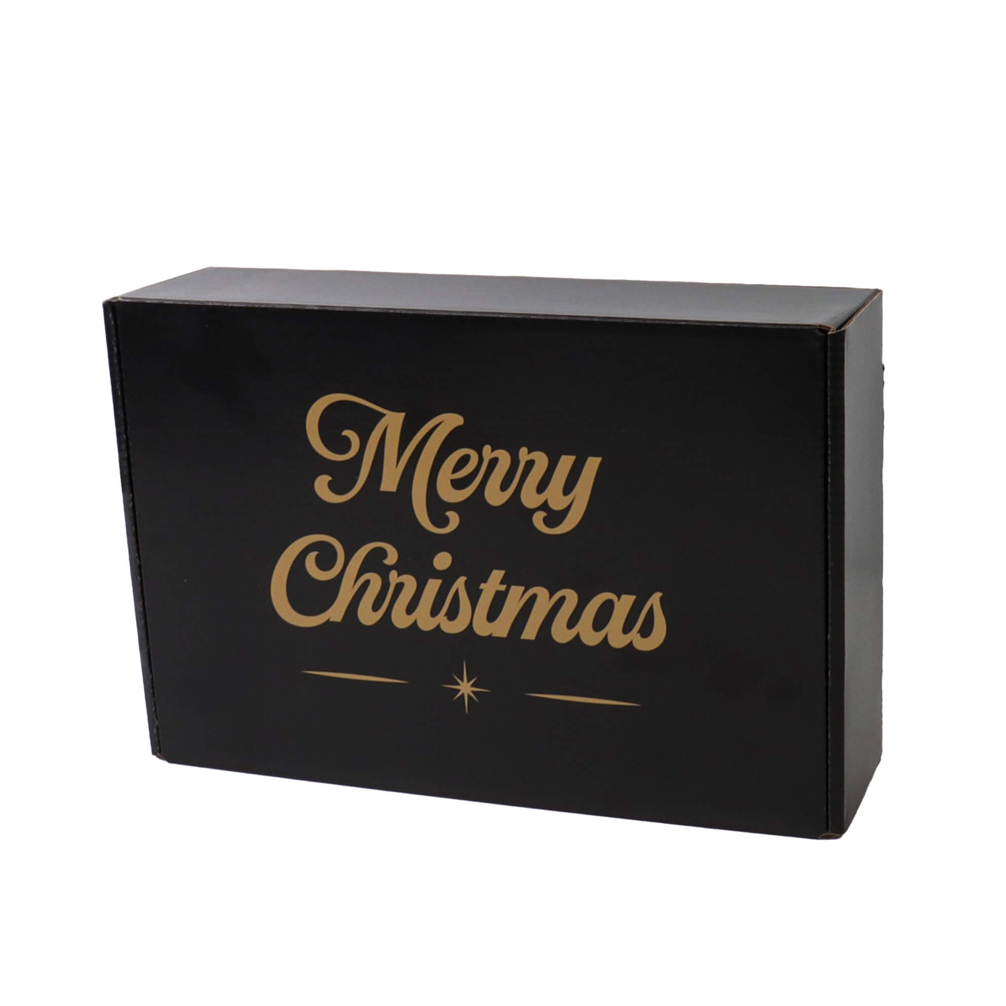 Diese schwarz-goldenen Weihnachtsboxen sind alles, was Sie brauchen, um Ihre Geschenke für die kommenden Feiertage zu verpacken. Der dekorative Aufdruck mit der Aufschrift „Frohe Weihnachten“ verleiht den Schachteln einen eleganten Touch und lässt ein warmes Weihnachtsgefühl aufkommen. Diese Schachteln messen 28 x 19 x 7,5 cm. Zu Ihrer Veranschaulichung: Das ist vergleichbar mit einer A5-Größe. Es passen also allerlei kleine Gegenstände hinein, die Sie mit dem Polstermaterial aus unserem Webshop einfach und gut schützen können.